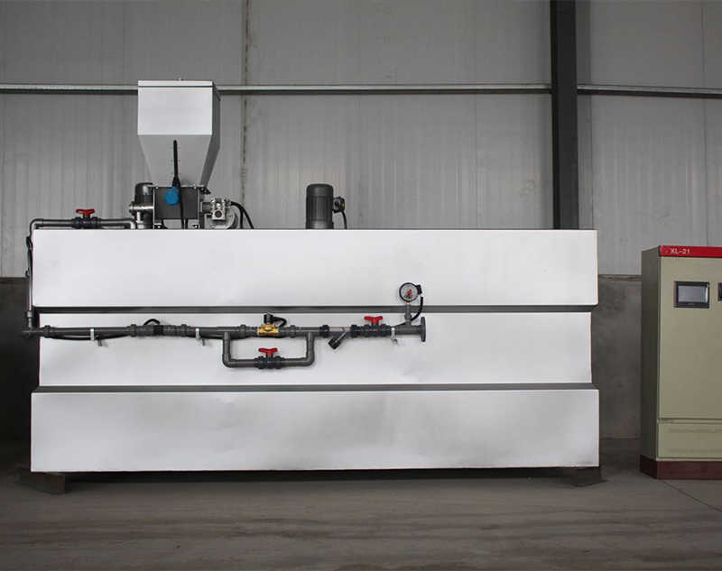 中科瑞沃加藥裝置主要由供水系統(tǒng)、攪拌系統(tǒng)、干粉預混系統(tǒng)、自動控制及檢測系統(tǒng)、一體化三槽式組合箱體、干粉投加系統(tǒng)、除濕干燥系統(tǒng)等部分組成。該設(shè)備配備有PLC控制系統(tǒng),自動化程度高,可遠程進行遙控操作,無需專人值守。